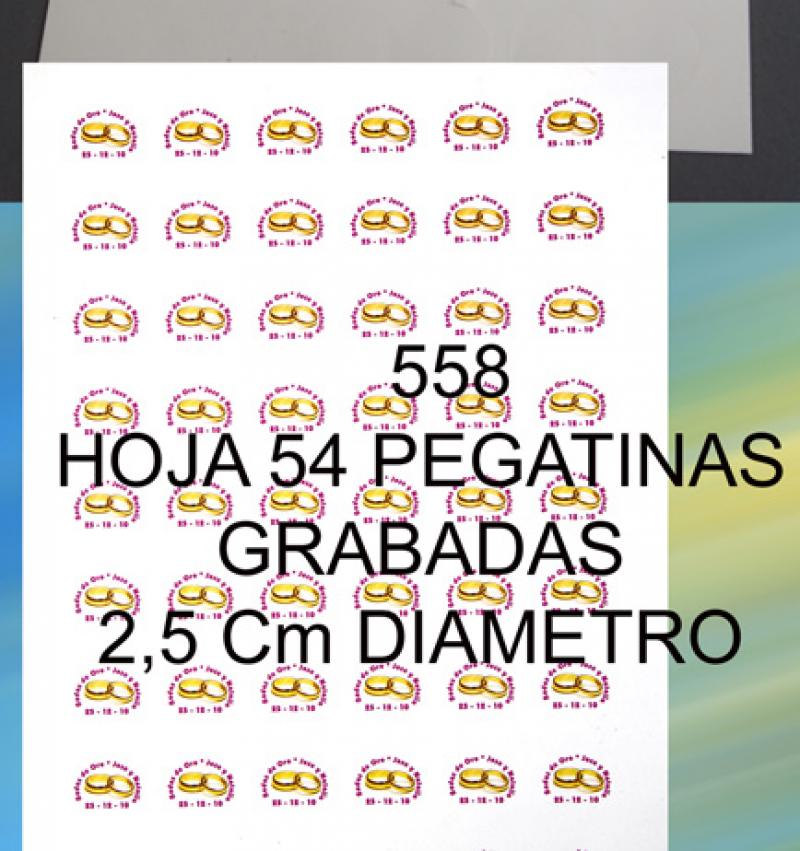 HOJA 54 PEGATINAS GRABADAS 2,5 CM REDONDAS